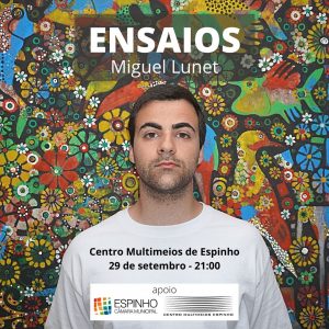 29 Setembro | 21:00 Sala António Gaio Miguel Lunet tem 19 anos, teve formação em piano clássico e teoria musical e é compositor, letrista e produtor. Nos tempos livres, estuda Engenharia e Gestão Industrial na FEUP. O gosto pela escrita começou cedo e aos 9 anos teve o seu primeiro livro de poemas editado (pelos pais). Aos 14 descobriu que conseguia cantar, quando participou no musical Grease, e aos 16 formou uma banda de originais portugueses. Desde então que também atua como artista de rua, na cidade do Porto. Nos tempos de confinamento, dedicou-se ainda mais à música e surgiu naturalmente o seu primeiro álbum de originais a solo – “Ensaios” – que dá nome a este concerto. O Miguel é o autor das músicas e das letras, todas em português, e também produziu o disco no seu estúdio caseiro. Teve a ajuda do Pedro (o irmão do meio), para os baixos e guitarras, e da Maria (a irmã mais nova), para as vozes e segundas vozes. Este concerto é composto por originais do Miguel, do álbum “Ensaios” e de projetos anteriores, assim como por alguns temas inéditos. Em termos de sonoridade, o espetáculo concilia o rock e o jazz, com base no som cru do piano tocado pelo Miguel, acompanhado pelo amigo Zé nas guitarras, pelo irmão do meio no baixo e percussão, e pela irmã mais nova, que também canta. Duração aprox: 90 min Classificação etária pendente Bilhete: 4€ Contactos para aquisição de bilhetes: 914325782 / miguellunet@gmail.com