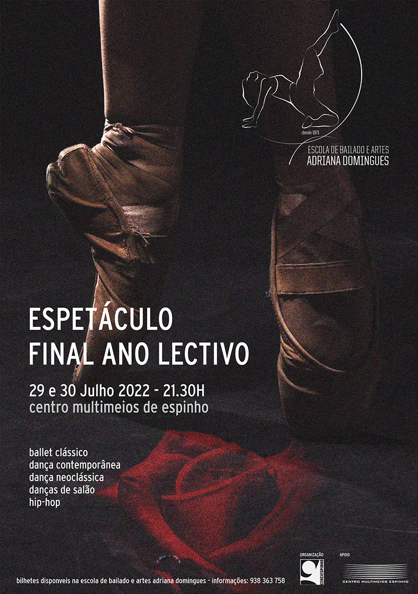 Bilhetes disponíveis na Escola de Bailado e Artes Adriana Domingues.