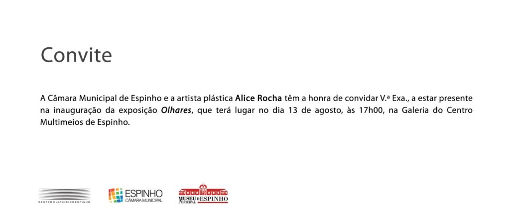 13 agosto a 4 setembro 2022 Galeria Inauguração 13 agosto l 17:00 Entrada livre. “Conjunto de desenhos que traduzem o meu estado de espírito, durante o segundo período de confinamento, isolada em casa. Foi a maneira que encontrei, de tornar a passagem dos dias e das horas, mais leves, interessantes e agradáveis! Alguns também foram desenhados em janeiro de 2022, aquando do meu internamento por um problema de saúde… A leitura e o desenho ajudaram a superar os 10 dias de recuperação! A Arte tem esse dom …num período de adversidade tornar tudo mais belo!” Alice Rocha, 4 de Agosto de 2022 Biografia Alice Maria Baptista da Rocha nasceu em 1954 e licenciou-se em Educação Física, com formação nas áreas de Dança, Ginástica, Teatro Canto e Música. Lecionou a disciplina de Educação Física ao 2º Ciclo durante anos na Escola EB,2/3 Sá Couto Espinho tendo nos últimos 4 anos ministrado aulas de teatro. Foi Professora de várias Classes de Formação mistas dos 3 aos 5 anos, Dança Jazz, Expressão pelo Movimento e treinadora de Ginástica Rítmica de Competição durante vários anos na AAE. Desde cedo revelou grande paixão pelas artes, sentiu nelas, um refúgio confortável da realidade. Aos 16 anos ganhou num concurso. Escolar com o Pseudónimo “Lili” o 1º Prémio de Pintura com uma Natureza Morta. Em Abril de 2012 e a convite da Amiga Manuela Melo começou a frequentar aulas de Pintura na FEUP orientado pelo professor Paulo Jesus, em Outubro de 2013 frequentou um Workshop de pintura com a pintora Ana Maria e, em Setembro do mesmo ano, começou a frequentar a oficina de Artes da USE, orientada pela professora Ilda com o intuito de aprender técnicas diversificadas. Por brincadeira de 2 amigos de longa data, Zé e João Curral que, com alguma graça diziam… -” A Alice agora, anda sempre agarrada ao pincel”… e… pela produção rápida das pinturas surgiu a sugestão das amigas Paula Cruz e Fernanda para fazer uma exposição como comemoração dos seus 60 anos, com o título “60 anos, 60 obras”, que decorreu de 26 de agosto a 2 de setembro, na galeria do Centro Multimeios. Alice Rocha regressa desta vez com nova exposição de desenhos, denominada “Olhares”. Horário de funcionamento terça-feira a domingo: 14:30 – 18:30 / 20:30 – 22:00