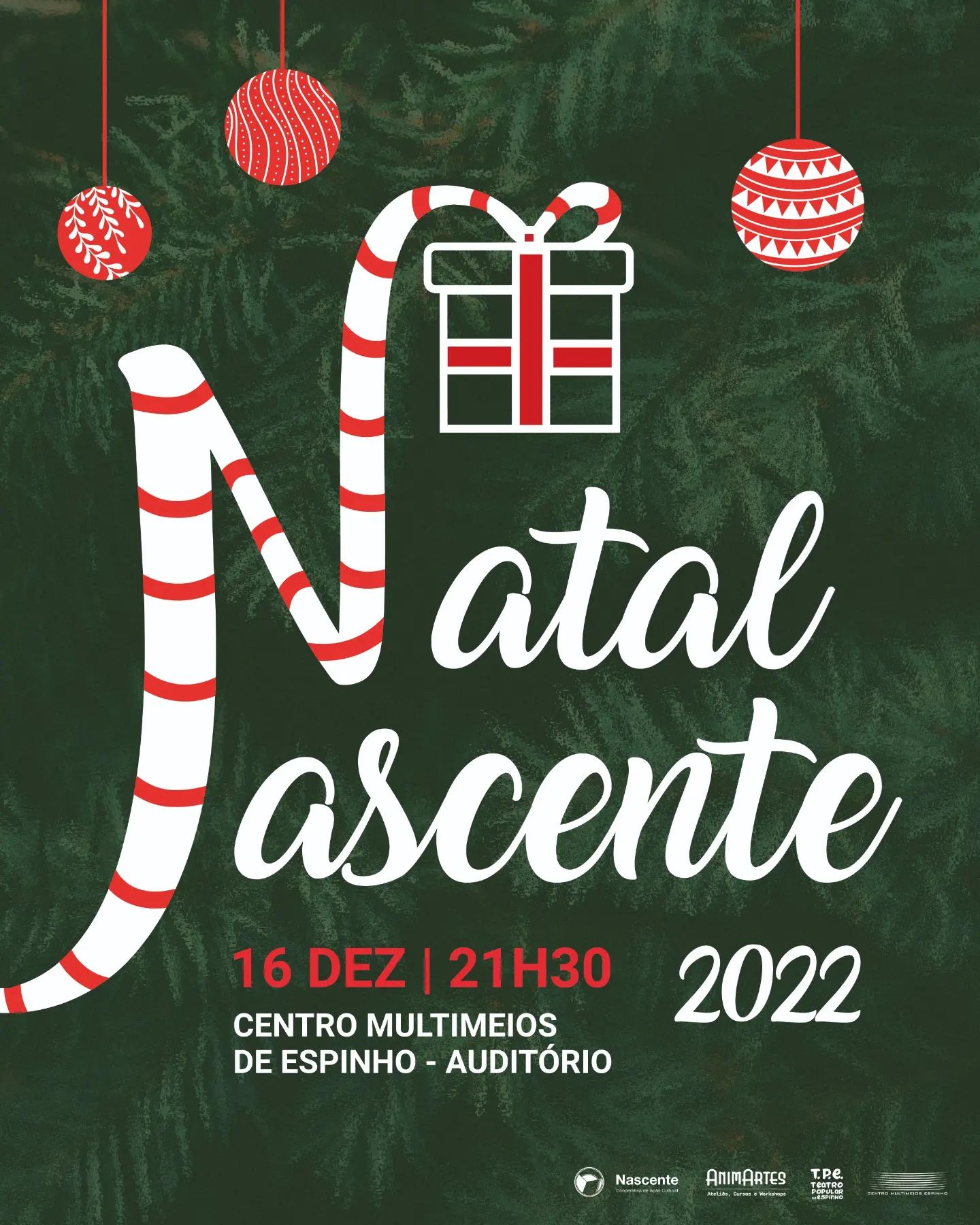 16 dezembro | 21:30 Sala António Gaio Espetáculo de Natal da Nascente. Com muita dança, teatro e muita alegria. Vem festejar connosco! Bilhetes no Auditório Nascente, rua 16, n°1200.