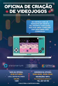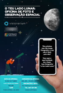 Reserve esta data: Sábado de 16 de Outubro! O Centro Multimeios de Espinho terá um dia voltado para a exploração da Lua, com sessões do Planetário, materiais em exposição e com oficinas desenvolvidas pelo Visionarium, tudo no contexto da Noite Internacional de Observação da Lua 2021. Nessa noite, decorre um evento público mundial, que incentiva a observação, apreciação e compreensão do nosso satélite natural, assim como a conexão com a sua exploração. Patrocinado pela NASA, o evento junta cientistas e público, um pouco por todo o Mundo, numa aventura de exploração da Lua. Página Oficial do evento O nosso programa foi criado de forma a que possa assistir a uma ou duas sessões de Planetário e possa também realizar as duas oficinas desenvolvidas pelo Visionarium. Os bilhetes podem ser adquiridos por atividade, ou então em forma de pack. Durante a noite, o Planetário e o Visionarium colaboram numa oficina de tratamento de imagem, onde com um telescópio poderá espreitar a Lua e tirar-lhe uma foto com o telemóvel, para depois a editar, partilhar e guardar como recordação. Esperamos por si! Programa Planetário 11:00 | 16:30  Voltar à Lua + info 15:30  Viagem pelos Planetas + info Oficinas 10:00-11:00 15:00-16:00 Impressão 3D Falta a tampa das pilhas? Que tal construíres um porta-chaves personalizado? É isso! Vamos criar a tua própria lua! Junta-te a nós nesta divertida oficina, onde vais aprender a construir digitalmente em três dimensões e a usar uma impressora 3D. Classificação etária: 8+   11:30-12:30 16:30-17:30 Desenvolvimento de Videojogos De certeza que já pensaste em criar o teu próprio videojogo. A tua mente enche-se de ideias para personagens heroicos, monstros fantásticos e cenários impressionantes. Mas por onde começar? Vem descobrir isso connosco, enquanto crias um divertido videojogo sobre exploração espacial. Classificação etária: 8+ 20:00-21:00 21:30-22:30 Fotografia “O teu lado lunar” De certeza que já olhaste para o céu, numa daquelas noites de lua cheia, e tentaste fotografar a nossa vizinha mais próxima, apenas para descobrires que fotografar a Lua para o Instagram não é fácil. Tens aqui a oportunidade de o fazer! Junta-te a nós e vem fotografar “o teu lado lunar”… Classificação etária: 15+   Preços 1 Oficina: 7,5€ 1 Oficina + Planetário: 10€ 2 Oficinas: 13€ 2 Oficinas + Planetário: 15€ Planetário Adulto: 4,5€ | Estudante: 3,8€ | Família (3 elementos): 11€ | Criança extra (até 12 anos): 3€ Informação A inscrição para as oficinas deverá ser realizada até 24h antes do evento, preferencialmente por e-mail (multimeios@cm-espinho.pt) ou através do tel (227331190).  A sua realização está sujeita a um número mínimo de participantes (6), máximo (16). Na oficina dedicada à Impressão 3D, o modelo deverá ser levantado 1 semana depois, na receção do Centro Multimeios ou, se preferir, será enviado por correio (portes pagos pelo participante). A Oficina de Fotografia e Tratamento de Imagem “O teu lado lunar” inclui captura de uma foto da Lua, com telemóvel através de telescópios do Planetário, na área envolvente do Multimeios. Em caso de condições atmosféricas desfavoráveis, os participantes realizarão a Foto Lunar no próprio Planetário.