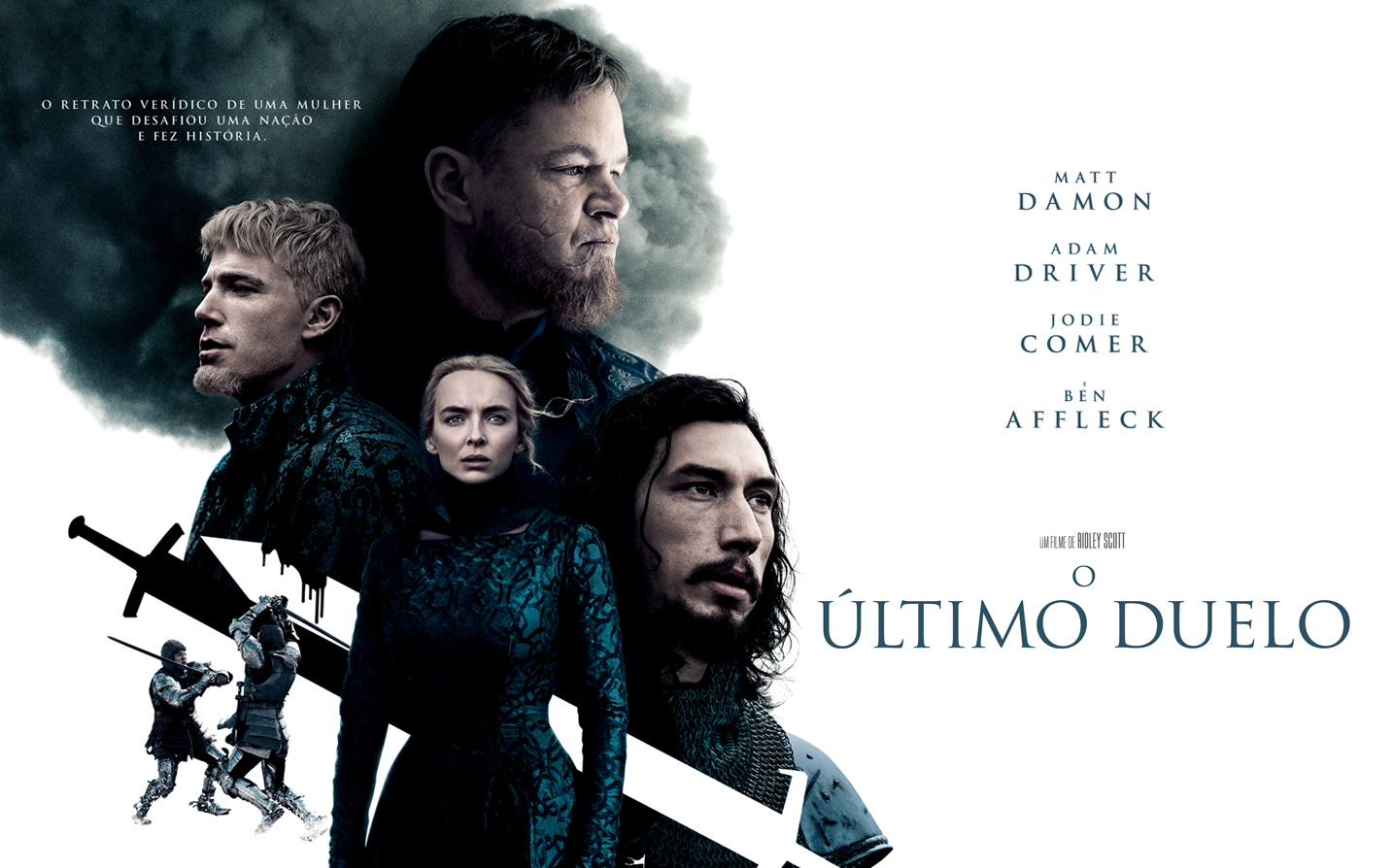 :: ESTREIA :: 28 Outubro a 5 Novembro 5ª 6ª (16:00, 21:30) Sáb (15:30, 21:30) Dom (16:00) 3ª 4ª (16:00) sessões extra (4 e 5 Nov) 5ª 6ª (16:00, 21:30) Carrouges é um cavaleiro respeitado conhecido pela sua bravura e habilidade no campo de batalha. Le Gris é um escudeiro cuja inteligência e eloquência tornaram num nobre admirado na corte. Quando Marguerite, a esposa de Carrouges, é violentamente atacada por Le Gris – uma acusação que ele nega – ela recusa-se a ficar em silêncio, acusando o agressor num acto de desafio que coloca a sua vida em perigo. O julgamento por combate que se seguiu, um duelo extenuante até a morte, coloca o destino dos três nas mãos de Deus. The Last Duel, de Ridley Scott Com: Jodie Comer, Matt Damon, Ben Affleck, Adam Driver EUA/RU. 2021. 142 min. Histórico/Drama. M/16 Bilhete: 4,5€