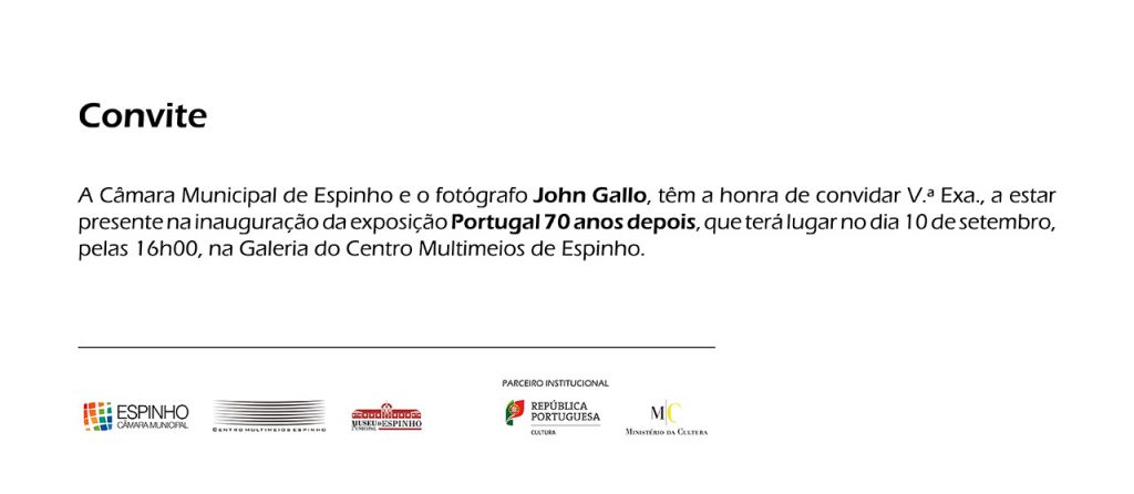 A exposição de fotografia Portugal 70 Anos Depois tem como ponto de partida a obra de Dieuzaide: este novo ensaio de John Gallo, obra de autor, respeita a abordagem de Dieuzaide, revisitando os locais que o fotógrafo francês elegeu para retratar Portugal há 70 anos, fazendo luz sobre o que é Portugal hoje, volvidas sete décadas.