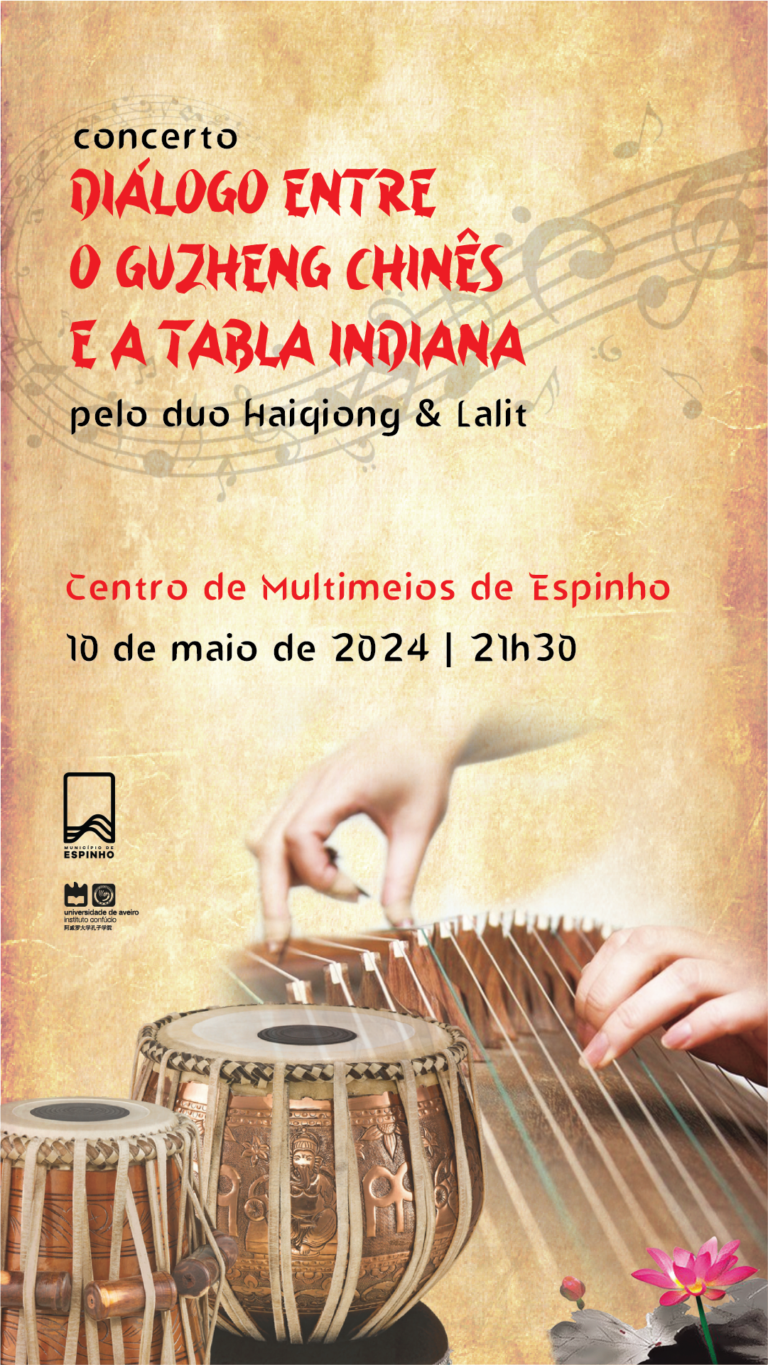 O Município de Espinho e o Instituto Confúcio da Universidade de Aveiro convidam a estar presente no “Concerto – Diálogo entre o Guzheng chinês e a Tabla indiana”, interpretado pelo duo Haiqiong Deng e Lalit Kumar.